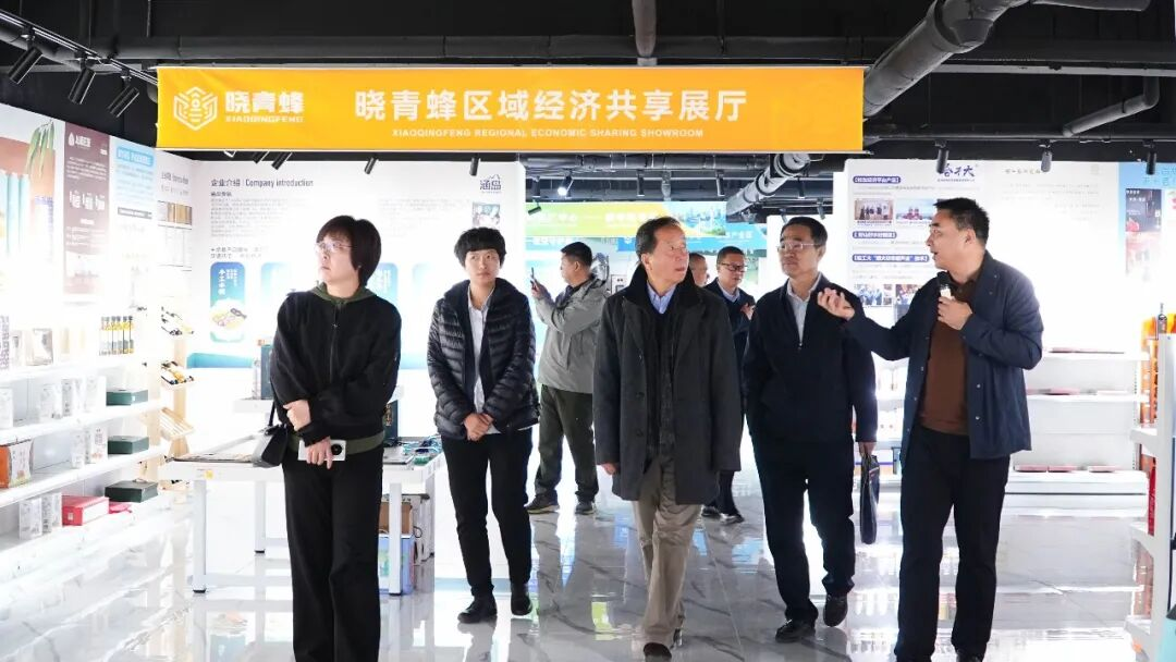 图为修建华会长等一行参观金海牛产业园展厅,金海牛平台创始人江树国介绍其产业生态。摄影:陈传鹏