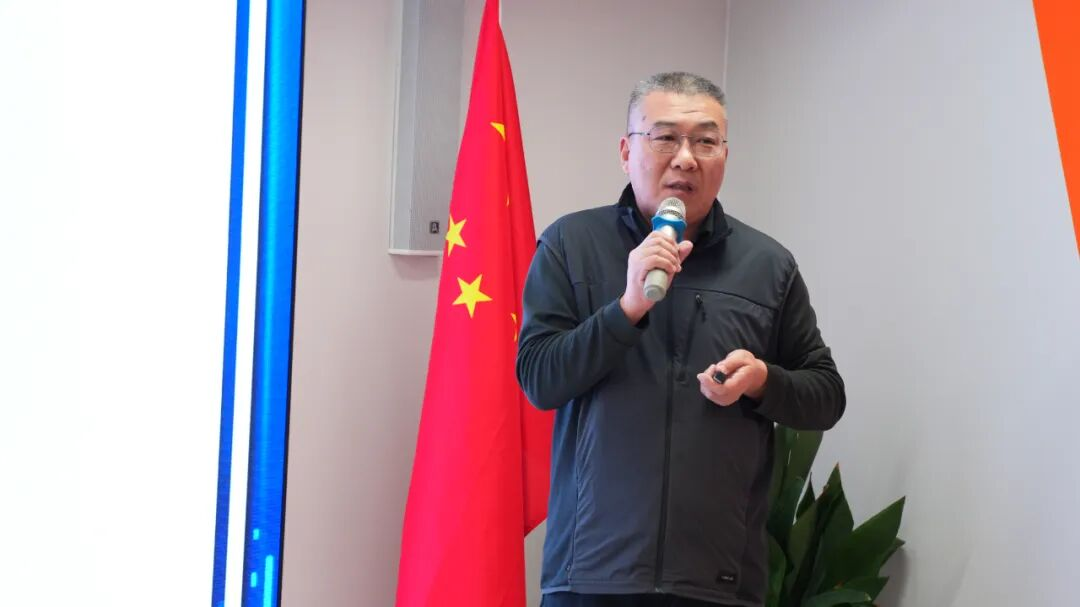 图为金海牛平台创始人江树国做平台介绍。摄影:陈传鹏